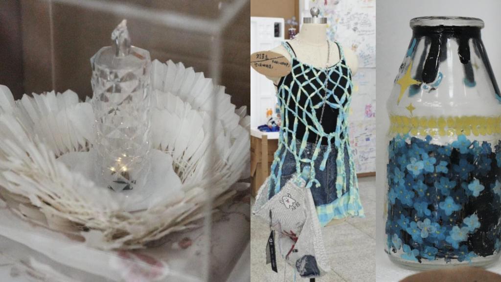 本次展览由成果展示和互动体验两个部分共同组成。主要以“upcycle”和“sustainability”为核心,将身边废旧的材料、二手物品,重新升级改造,赋予其全新的生命。