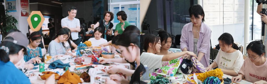 绿色生活不仅只是说说而已,更应从你我做起。展览现场,HappyZero工作坊带领观展的同学们体验废弃边角料再创的快乐过程。以“零浪费 巧转化 焕新生”的概念,利用废旧过时的边角料、各色纽扣、缝补、剪裁创作成属于自己风格的“防蚊草药包”体验传统与创意的碰撞,共同为绿色生活贡献一份力量!