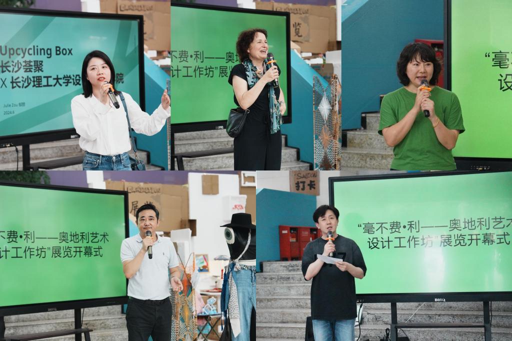 开幕式由设计艺术学院副院长王龙主持,长沙理工大学对外合作与交流处处长甘海鹰作为特邀嘉宾出席。此外,设计艺术学院院长王健、知名奥地利设计艺术家Jasmine,以及长沙荟聚公共事务与可持续发展部负责人邹丽亦发表了精彩演讲。