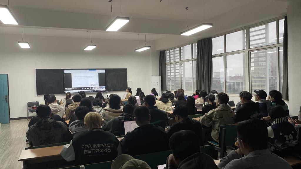 在这节课中,Pauline Deutz教授主要从三个方面展开:1.关注环境的根源和可持续发展的根源2.可持续发展全球倡议3.对可持续发展进展的批评丰富的图表和生动的案例给同学们带来了一节收获感满满的课堂。无论是线上还是线下的同学都热情高涨,目不转睛,跨越语言和时空的障碍,聚精会神聆听着Pauline Deutz教授的讲解。