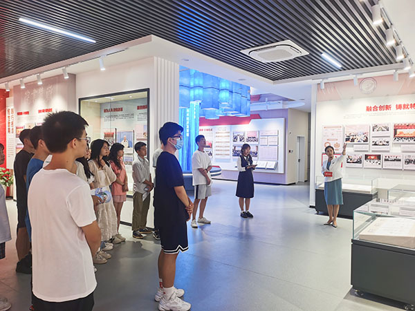 在教育基地讲解员的引导下,同学们由外厅进入,首先映入眼帘的是印有学校变迁历程的浮雕,观看了基地宣传片《立德树人 逐梦报国》。一起重温了雷竞技官网几十年来不断发展壮大的风雨历程,深切感受到了雷竞技官网厚重的文化底蕴和发展潜力。教育基地以“立德树人 逐梦报国”为主题,集中展示了党领导高等教育发展的历史进程和学校的三全育人成效,打造育人新阵地。基地展览面积有1900多平方米,展陈方式丰富多样。主要分为“国之大者”、“材之茂者”、“师之贤者”、“行之实者”四个篇章,运用照片、景窗模型等实物来展现学校的发展历程和光辉历史,呈现了学校与时代同进步、与人民同奋进的历史进程。