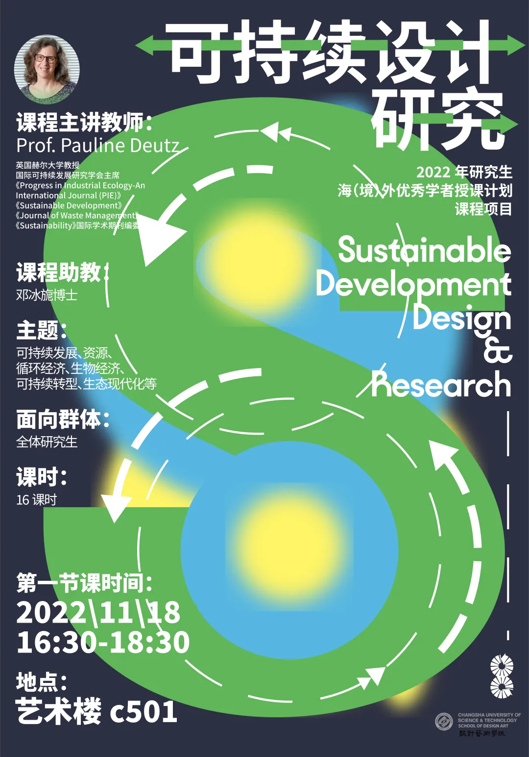 为了营造浓厚的校园科学文化氛围,建设优良学风,使研究生们接受先进的信息和理念,迅速接触学术前沿,开拓视野,激发研究生学术科研热情。长沙理工大学设计艺术学院开展2022年研究生海外优秀学者授课计划课程项目——《可持续设计研究》