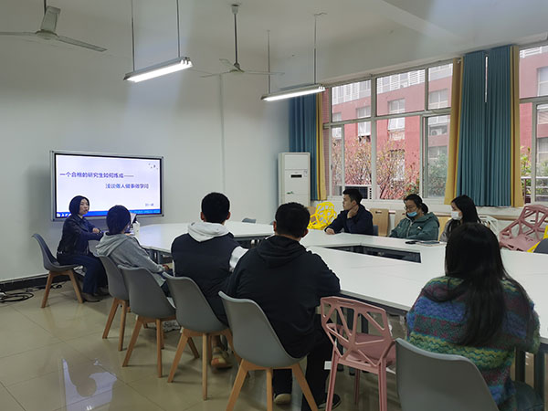 刘一峰老师给大家带来的主题是《一个合格的研究生如何炼成——浅谈做人做事做学问 》。首先,她从为什么要读研究生?和研究生毕业之后想从事什么专业?这两个问题着手,感召同学们不忘初心,在科研道路上坚定自我;其次,通过分享自己的读博和发核心期刊的经历,让同学们感受到了知识的魅力以及阅读书籍对于科研者的重要性;最后,刘老师告诉同学们兴趣是成功的动力,努力是成功的基础,坚持是成功的关键。新时代研究生应当抓住机遇锤炼提升,做到不负韶华,腹经纶;不负众望,立志向;不负经年,展抱负!