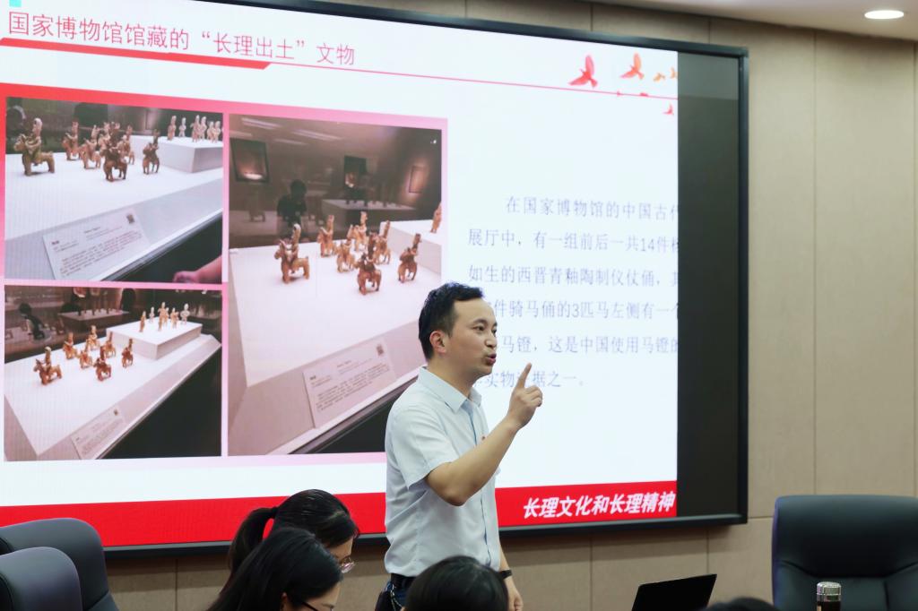 设计艺术学院党委书记李伟以《拾遗长理沃土中历史文物背后的故事》为题分别到第二党支部和第三党支部上了一堂微党课。李书记从金盆岭(长沙理工大学老校区)出土的人类历史最早的一批马镫(西晋)谈到长理门口的中国第一条现代公路,从文化自信谈到道路自信,从“三高四新”谈到“长理担当”,深情地介绍了长理的发展历史和文化特色,希望党员赓续实干奋斗传统,在学思践悟中坚定理想信念,在奋发有为中践行初心使命。