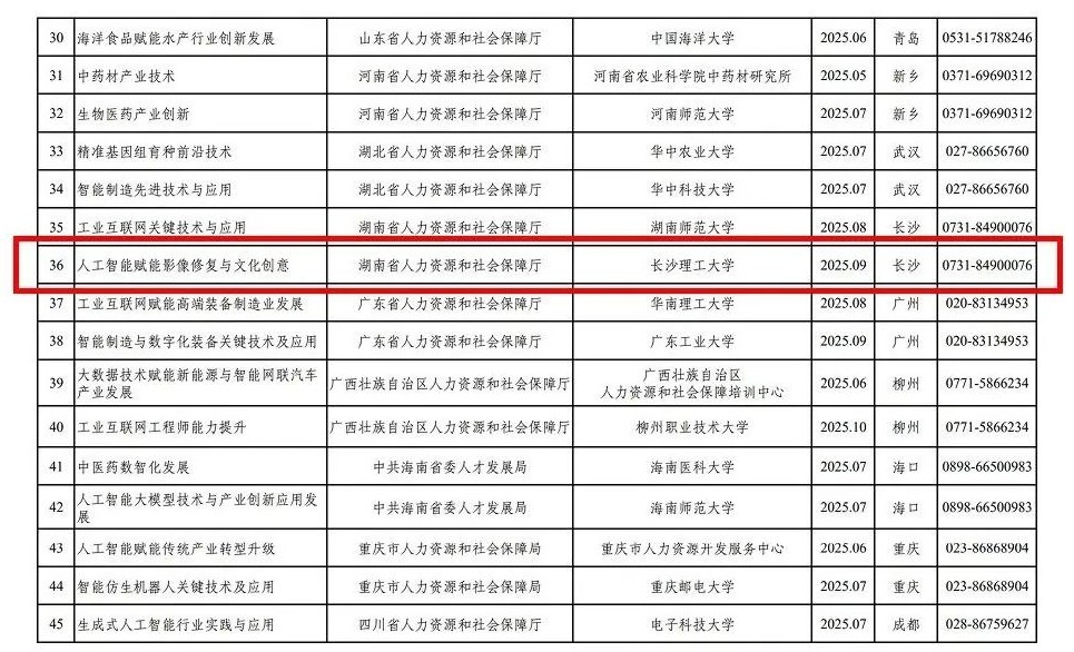 近日,人力资源和社会保障部办公厅印发“专业技术人才知识更新工程2025年高级研修项目计划”的通知,长沙理工大学申请的《人工智能赋能影像修复与文化创意》高级研修项目,成功入选该计划。