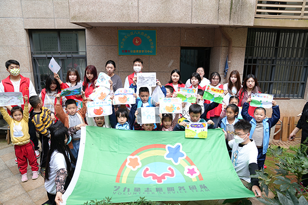 小朋友们手举画作,脸上洋溢着收获与骄傲,在一片欢声笑语中进行合影留念。活动依托“美育课堂”创新力优势,为传递护河理念赋能。在培养孩子绘画创作力的同时强化其爱河、护河习惯的养成,增强了社会实践活动的专业性,成功打造具有我院美育文化特点的公益课堂。