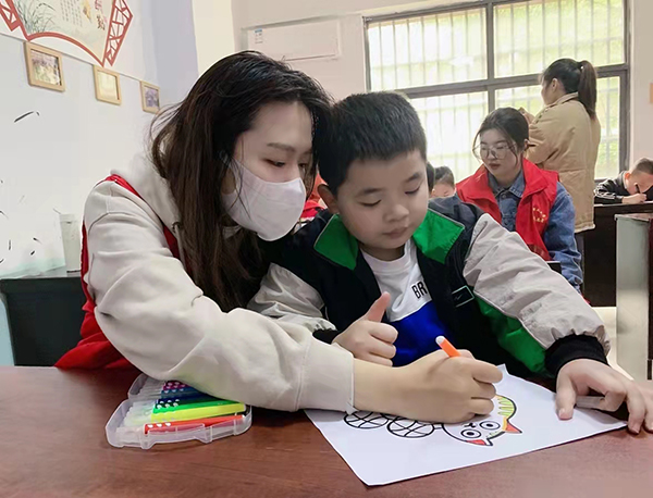 本次活动旨在通过手绘的方式让小朋友们感受人与自然的密切关系。志愿者们同小朋友们观看动物保护动画片,与小朋友们拉进关系。志愿者对小动物的故事进行讲解后,带领每位小朋友选择自己心仪的动物线稿后进行上色。小朋友们手握马克笔,在志愿者们的帮助下用五彩斑斓的色彩绘出灵动的作品。作品完成后每位小朋友脸上都洋溢着可爱的笑容,“志愿者小老师”也对他们的作品进行肯定和奖励。在欢声笑语中小朋友们手拿作品与志愿者们合影留念。