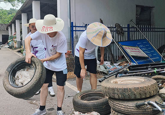 仪式结束,党委书记李伟及带队老师文卫民深入当地乡创中心进行实地探访,听取当地“白箬之光”的项目介绍,并与由手工艺1904班徐朝纲、服装1902班邓贻等9人组成的实践团进行深入交谈。随后,实践团成员前往分拣中心进行实地考察,以“绿色环保、儿童友好”为理念,变废为宝,因地制宜,进一步根据当地现有材料及大家的设计构想完善了改造方案。