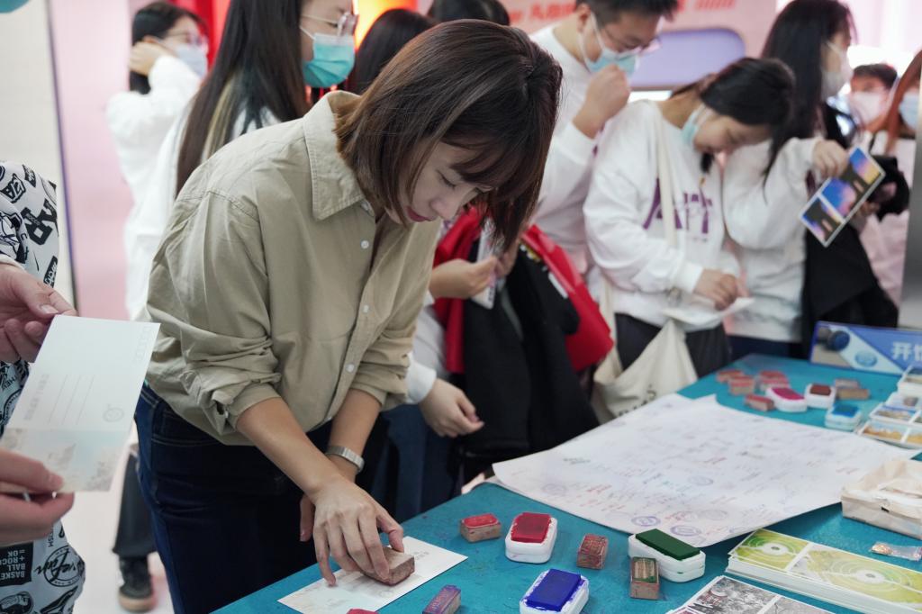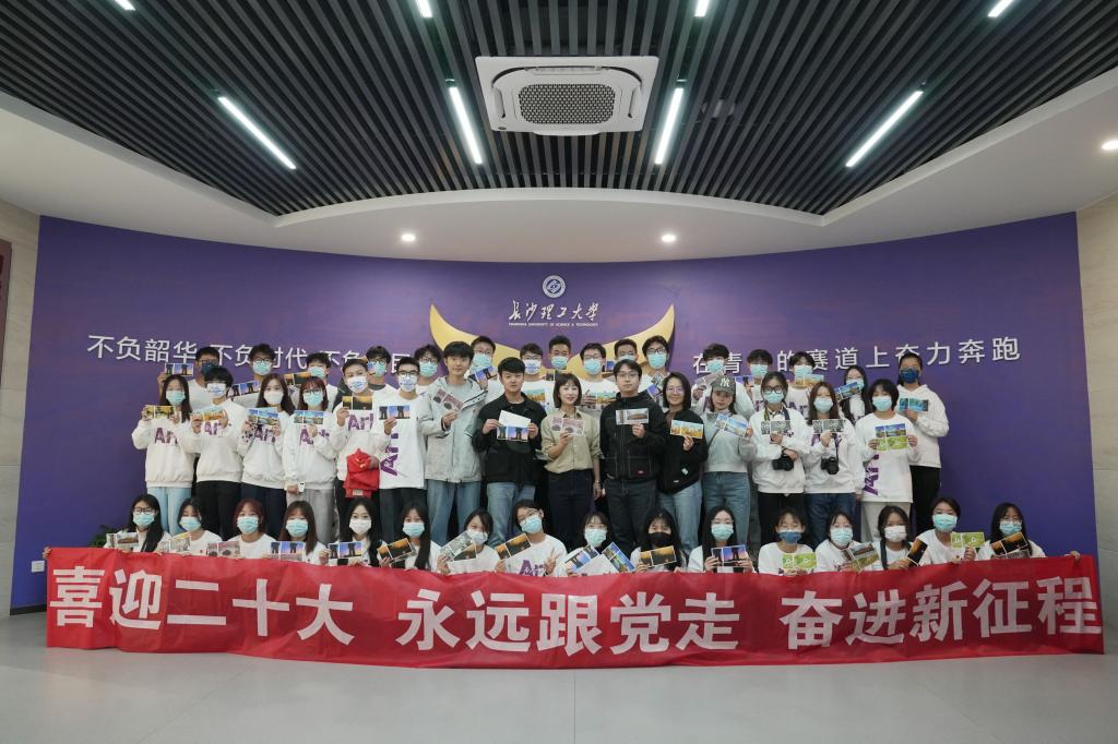 跨过启航桥,奋力新征程,解说员带领艺术学子依次沿着“国之大者”、“材之茂者”、“师之贤者”、“行之实者”四个篇章路线参观。在基地前厅观看完“三全育人”纪录片后,艺术学子一一观摩微缩复刻的港珠澳大桥和矮寨大桥、陈树湘故居和十八洞村等多个湖湘红色文化地标等兼具审美价值及教育意义的陈列,走进“物载匠心”展厅,欣赏长理教师们的相关作品。万馨强调:“在长理66年的发展历程中,我院坚守初心,用艺术感染力与影响力凝聚起师生奋进的磅礴力量,在参观时更要结合艺术专业特色去观察、思考。”参观结束后,艺术学子纷纷领取明信片印上独属于长理人的印记,并于展厅大堂拍照留念。