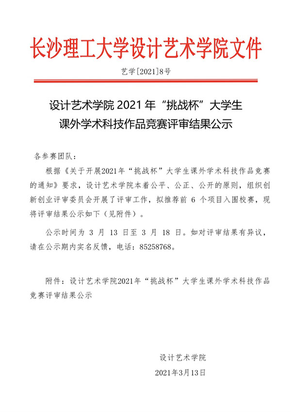 本次“挑战杯”选拔活动的成功举办,不仅增强了艺术学子的创新意识,也助力了优秀人才的选拔和培养,为长理学子树立了优秀榜样。