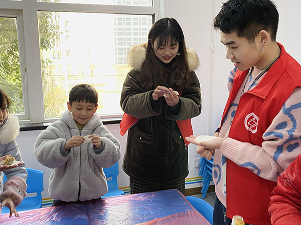 12月20日下午,在冬至来临之际设计艺术学院精心策划开展以“包住喜和乐,绘出合家欢”为主题的社区志愿服务活动并于雨滴儿成长乐园中心成功开展,此次活动由实践部组织开展,工美1905班周嘉慧、1908班高驰、数媒1908班牛璐瑶等十余名志愿者参加。