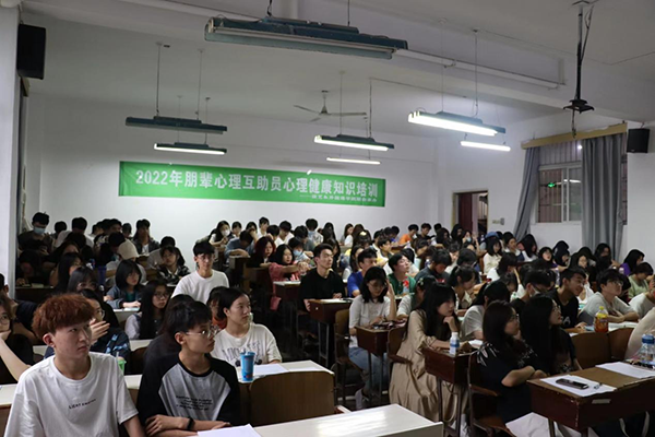 2022年5月24日下午,设计艺术学院与外国语学院在长沙理工大学金盆岭校区三教214顺利召开朋辈心理互助员心理健康知识培训会。本次培训会由设计艺术学院李慧老师和外国语学院武巧琳老师主讲,设计艺术学院与外国语学院共有143名朋辈心理互助员参与此次知识培训,其中两院班级心理委员21人,寝室心理委员122人。