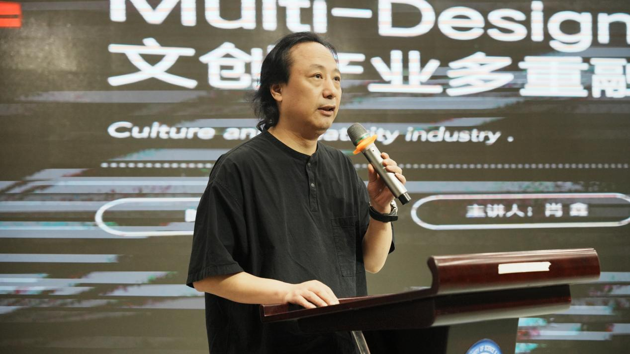 6月18日下午,长沙理工大学第十六届云影讲坛设计艺术学院分论坛《文创产业多重融合的设计态度》专题讲座在建筑艺术楼A101成功举办。讲座由湖南省人民政府参事室特约研究员,湖南省设计艺术家协会文创设计委员会主任,湖南湘江新区文化创意和旅游产业协会会长,中南大学、长沙理工大学设计艺术学院校外研究生导师肖鑫主讲,设计艺术学院党委委员严海岸、研究生辅导员李慧以及130余名研究生参加。