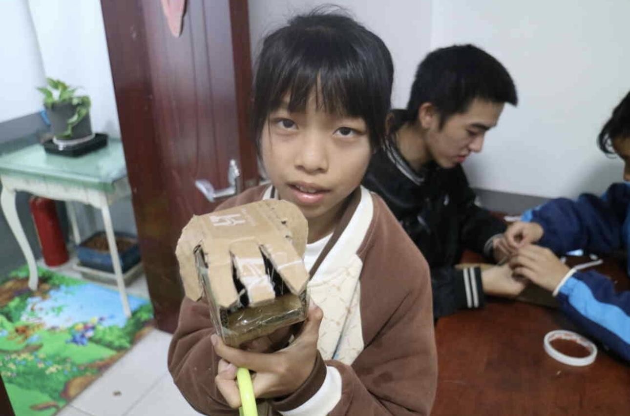 志愿者通过趣味PPT讲解与实操示范,拆解机械手臂的结构逻辑;动手环节中,孩子们分组协作,在志愿者的引导下打造出可操作的纸壳机械手臂,并踊跃分享创作细节。“玩中学、学中思”的氛围让孩子们充分感受手工与科学的融合乐趣。