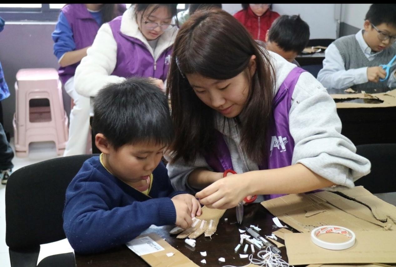 11月1日下午,长沙理工大学“藝力量”青年志愿者协会,于五矿·格澜郡小区开展“纸壳金刚·废旧纸壳重获新生”实践活动。活动聚焦废旧纸壳制作机械手臂,融入“变废为宝”理念,以“动手创作+知识渗透”的形式激发其探索热情。