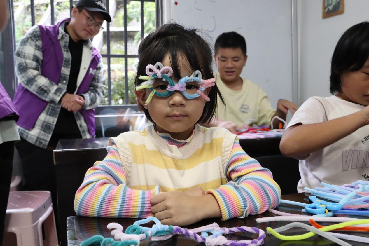 活动中,志愿者通过PPT讲解介绍扭扭棒的创作技巧与应用,引导孩子们发挥想象力进行手工制作。孩子们在实践过程中逐步掌握技能,并在协作中体会到创造乐趣。
