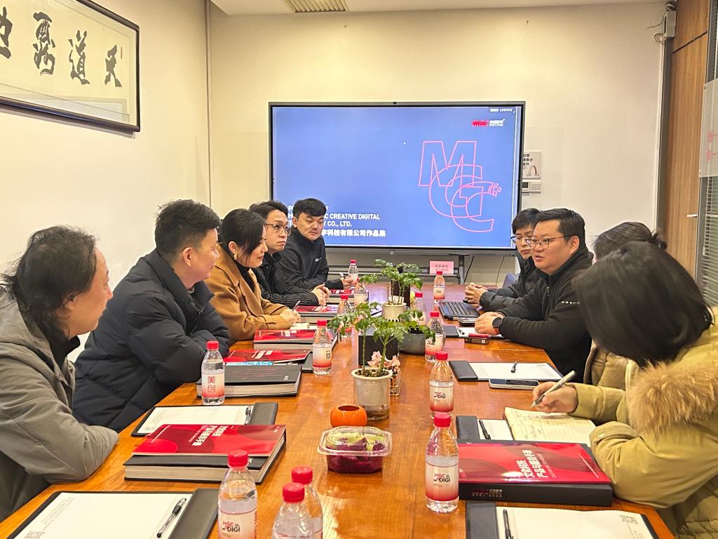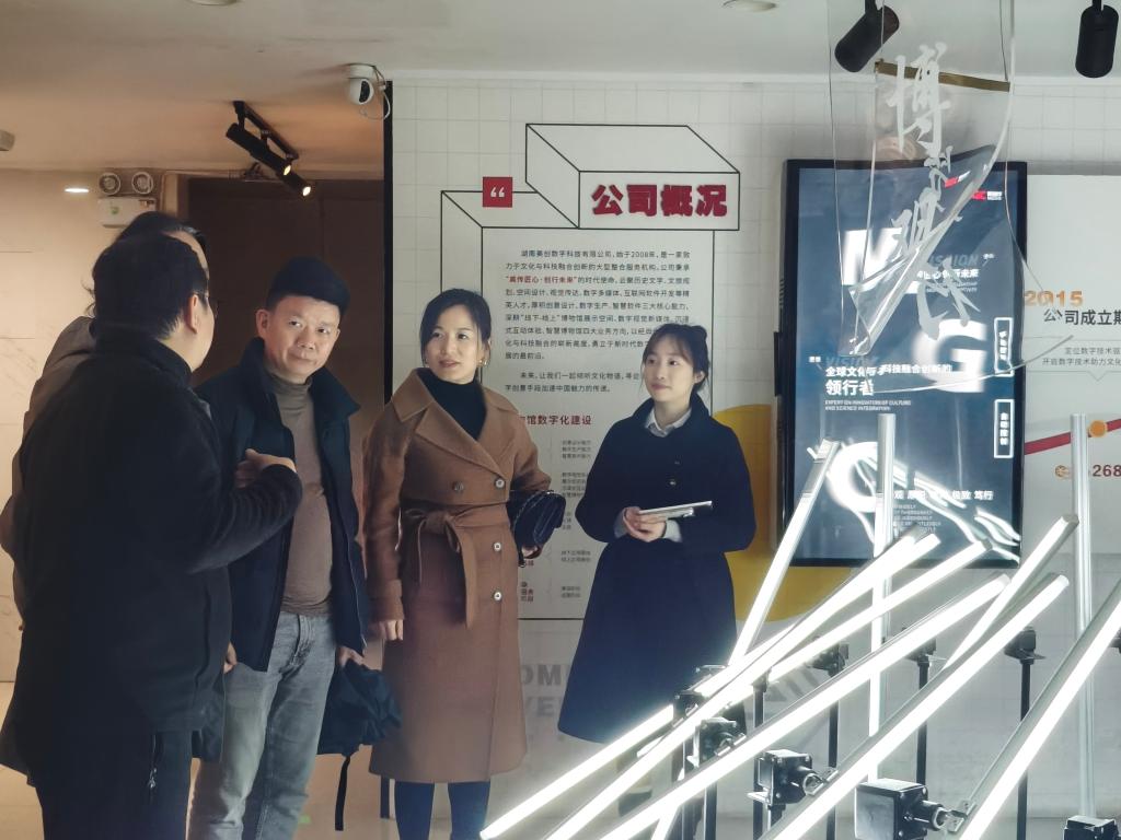 3月5日下午,学院党委书记郭剑、党委委员严海岸、就业专干程静征、2025届毕业生辅导员李世成前往湖南美创数字科技有限公司进行走访调研,开展“访企拓岗”专项工作并商讨产学研校企合作事宜。湖南省人民政府参事室特约研究员、湖南湘江新区文化创意和旅游产业协会会长、长沙理工大学设计艺术学院校外研究生导师肖鑫;湖南美创数字科技有限公司董事长杨红爵、品牌部负责人廖思雨、人力资源部负责人彭佳等出席座谈会。