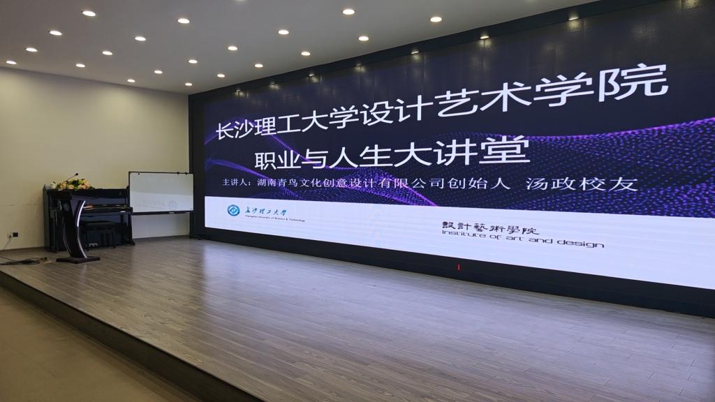 1月4日上午,长沙理工大学设计艺术学院“职业与人生”大讲堂在建筑艺术楼A101会议室如期举行。本次活动特邀湖南青鸟文化创意设计有限公司创始人、学院优秀校友汤政返校,以“设计未来・艺启新程—设计艺术学院毕业生如何择业”为题开展分享。学院党委书记郭剑、副书记宋国宁及大一至大四各年级学生代表共同参与,现场氛围热烈融洽。