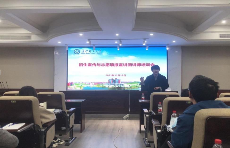 11月12日下午,长沙理工大学2021年本科招生宣传培训会在文科楼D207会议室举行。湖南省教育考试院普招处副处长赵霄、湖南科技大学招生办主任匡曼丽受邀做主题讲座。培训会由招生就业处处长曹瑛主持,近60名教师参加此次培训会。
