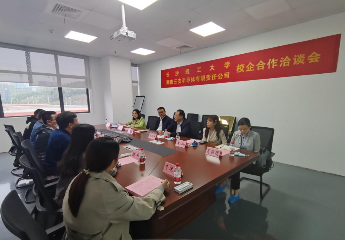 为积极响应教育部关于“开展全国高校书记校长访企拓岗促就业专项行动”的号召,进一步加强校企合作、供需对接,拓宽毕业生就业渠道,着眼长远构建市场化社会化的就业工作机制。2022年4月29日下午,雷竞技官网副校长刘朝晖、物电学学院党委书记张国强、招就处副处长李娜、物电学学院党委副书记宋国宁携物电学院老师一行6人前往湖南三安半导体有限责任公司进行交流。