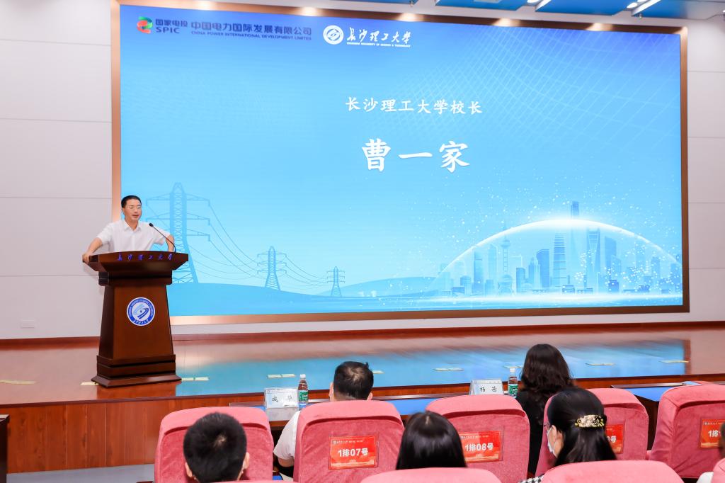 曹一家对与会领导、来宾表示热烈的欢迎和衷心的感谢。他指出,国家电力投资集团是全球最大的光伏发电企业、新能源发电企业和可再生能源发电企业,中国电力做为国家电投集团的核心子企业和旗舰上市公司,为学校毕业生提供了广阔的人才晋升通道和多元化的人才培养平台。他以中国电力杰出校友成长成才的经历,鼓励毕业生勇敢面对就业挑战,沉下身子,深入基层,真正地锻炼好工作能力,成长为中国电力核心骨干力量。他希望在“碳达峰、碳中和”的背景下,学校2023届毕业生能抓住此次机会,投身于祖国电力行业,从基层岗位做起,仰望星空,脚踏实地,积极实现个人价值和人生梦想,为服务社会经济发展贡献自己的力量。