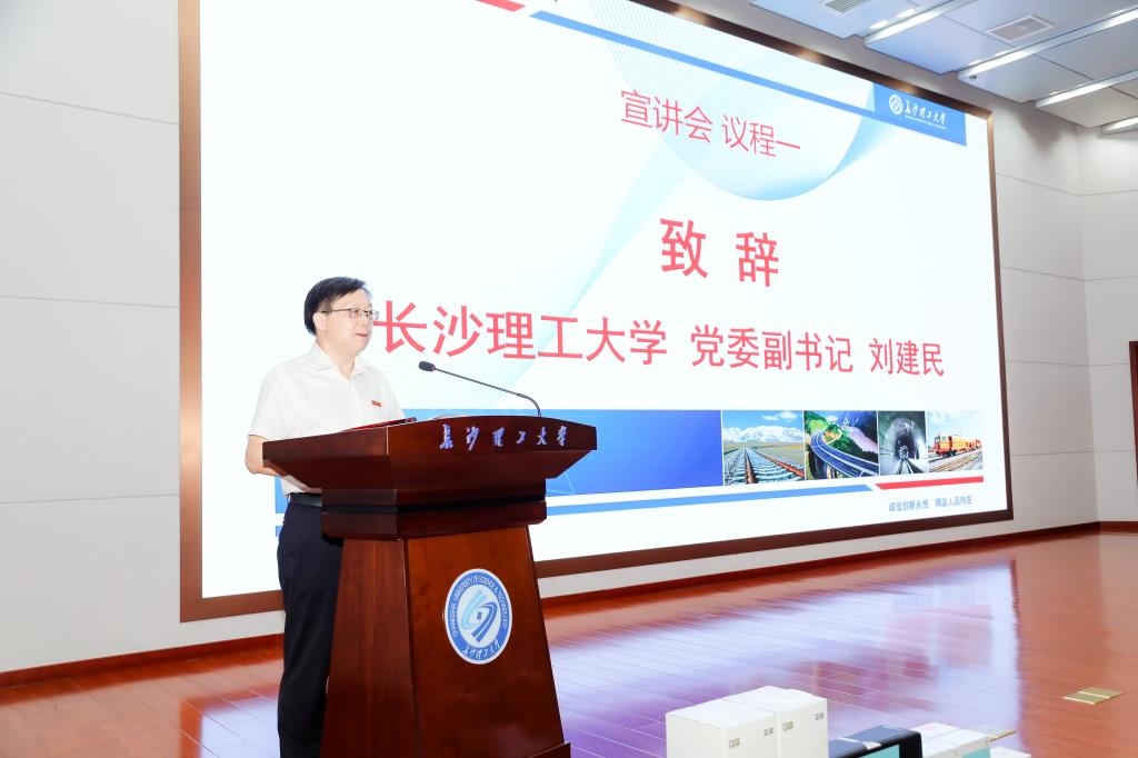 刘建民对参加本次招聘会的用人单位表示热烈欢迎与衷心的感谢。他指出,中国铁建在高速铁路、高速公路、桥梁隧道和城市轨道交通工程设计及建设领域均确立了行业领先地位,是全球最具实力、最具规模的特大型综合建设集团之一,给毕业生提供了广阔的发展平台和机会。他希望毕业生聚焦“大战略、大工程、大情怀”,到祖国最需要的地方去建功立业,在中国铁建这个大舞台上找到属于自己的未来。