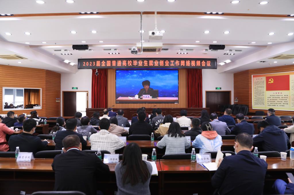 11月15日,教育部、人力资源和社会保障部召开2023届全国普通高校毕业生就业创业工作网络视频会议,全面部署做好2023届高校毕业生就业创业工作,教育部党组书记、部长怀进鹏,人力资源和社会保障部党组成员、副部长俞家栋出席会议并讲话,教育部党组成员、副部长翁铁慧主持会议。雷竞技官网在云塘校区一办公楼九会议室设分会场并组织收看网络视频会议。校长曹一家、副校长钱国平,招就处、创新创业学院主要负责人,各学院党委副书记、就业专干参加会议。