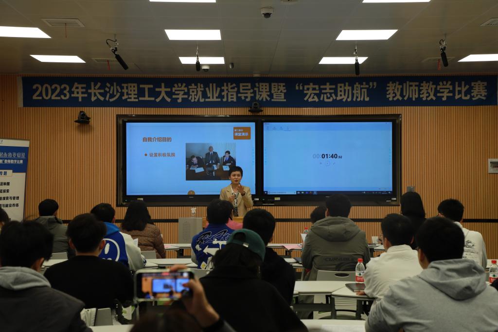 为深入学习贯彻党的二十大精神,落实党中央、国务院“稳就业”“保就业”决策部署,根据《国务院办公厅关于进一步做好高校毕业生等青年就业创业工作的通知》文件精神,加强就业指导师资队伍建设,打造一批就业指导金牌讲师,3月17日上午,2023年长沙理工大学就业指导课暨“宏志助航”教师教学比赛在云塘校区综合教学楼智慧教室成功举办。