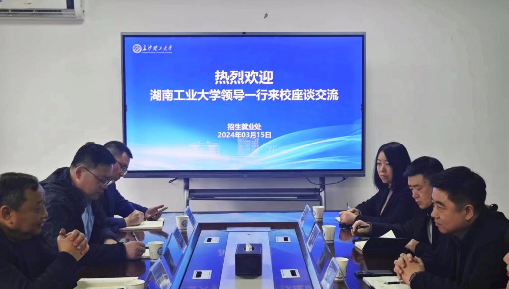 3月15日上午,湖南工业大学招生与就业指导处处长欧舟一行7人来雷竞技官网调研。雷竞技官网招就处处长田上及各科室负责人参加此次活动。