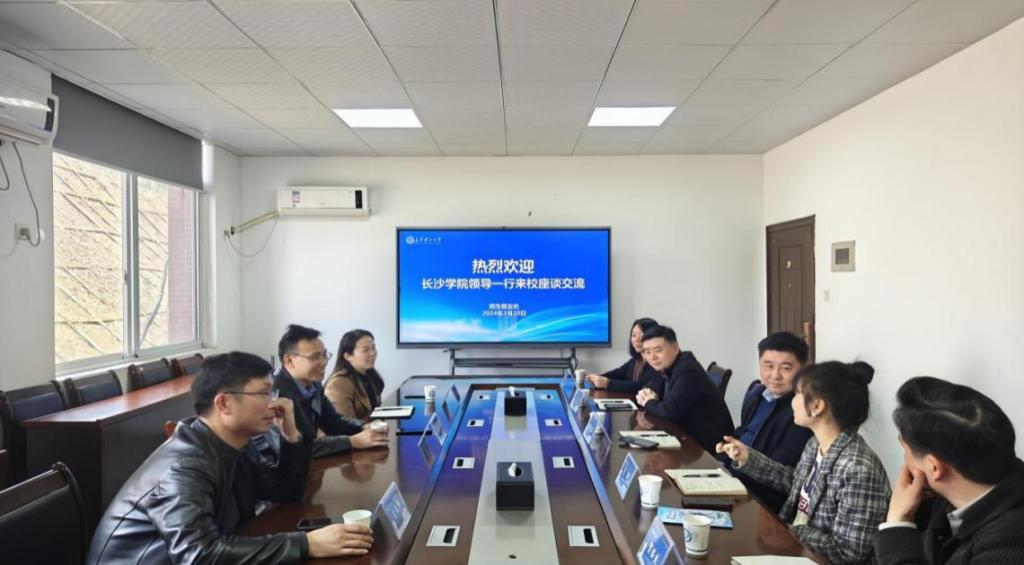 3月20日上午,长沙学院招生与就业指导处处长黎文普一行来雷竞技官网调研座谈。招生就业处处长田上、副处长李娜及各科室负责人参加调研。