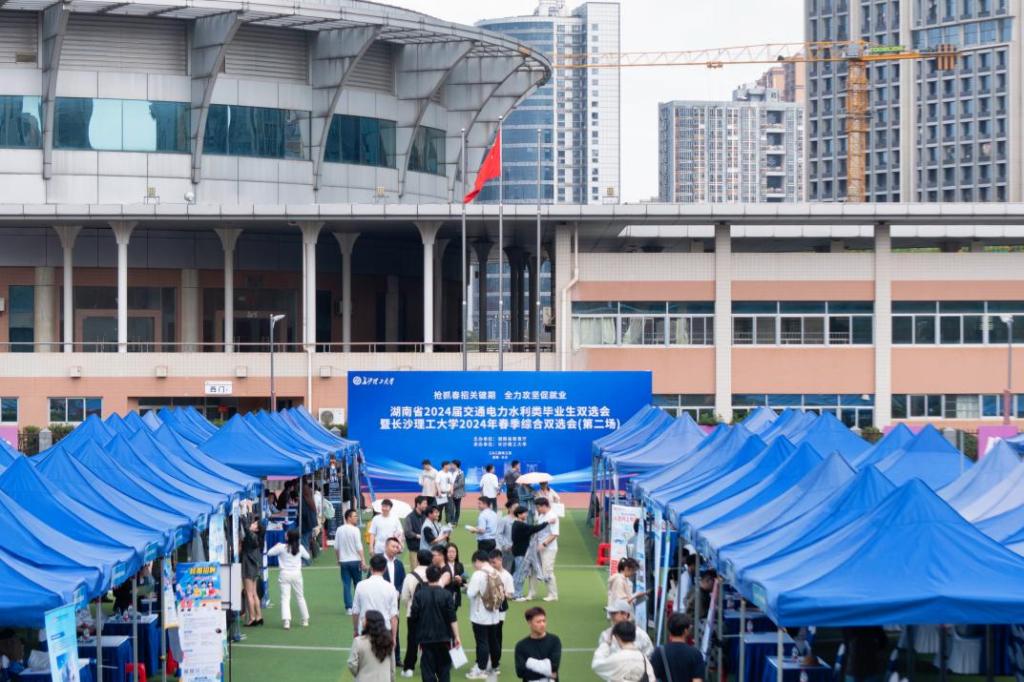 为抢抓春招关键期,全力攻坚促就业,3月23日,雷竞技官网在金盆岭校区体育场举行2024年首场湖南省2024届交通电力水利类高校毕业生大型双选会暨第二场长沙理工大学2024届毕业生春季综合双选会。活动由湖南省教育厅主办,长沙理工大学承办。相关部门与各学院人员现场指导学生求职就业。