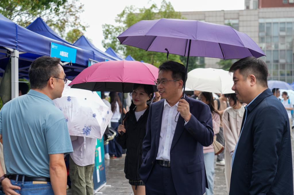 10月19日,湖南省2025届交通电力水利类高校毕业生大型双选会暨长沙理工大学2025届毕业生综合双选会在雷竞技官网云塘校区图书馆东广场成功举行。活动由湖南省教育厅主办,长沙理工大学承办,校党委书记付宏渊、副校长钱国平到招聘现场指导工作,并与用人单位进行亲切交流,鼓励应聘学生抓住机会,积极行动。招生就业处、各学院就业工作人员在现场向企业推荐毕业生,指导毕业生求职应聘。