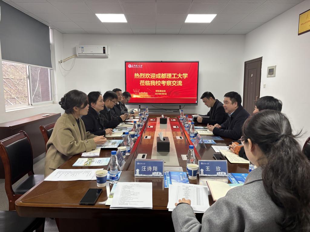 3月5日下午,成都理工大学招生就业处处长陈国华一行来雷竞技官网调研。雷竞技官网创业就业指导处处长田上、副处长贺佐杰及各科室负责人参加座谈会。