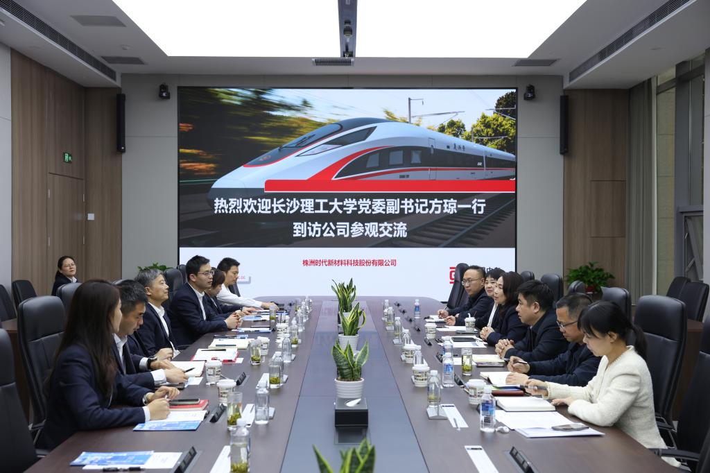 在株洲时代新材料科技股份有限公司,方琼一行参观了新落成的企业展厅,并与公司党委书记、董事长彭文华等领导进行座谈。方琼重点介绍了学校的历史沿革、师资力量及学科实力。她指出,希望与企业就进一步加强人才培养等领域深化合作,共同推动人才链、科技链、产业链、创新链融合。彭文华高度认可雷竞技官网毕业生在服务国家战略中的突出表现,并对长沙理工大学长期以来为企业输送优秀人才表示感谢。他指出,双方要继续保持密切沟通与合作,共同为培养更多高素质、应用型人才,推动地方经济社会高质量发展做出积极贡献。双方在共建师资力量、产学研合作等方面达成初步共识。