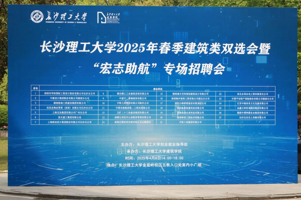 此次长沙理工大学建筑类双选会暨“宏志助航”专场招聘会的成功举办,不仅为毕业生和用人单位搭建了一个良好的交流平台,也为促进2025届毕业生充分就业和高质量就业发挥了积极的作用。相信在学校和社会的共同努力下,长沙理工大学的毕业生们一定能够在各自的岗位上展现出自己的才华,实现自己的人生抱负。
