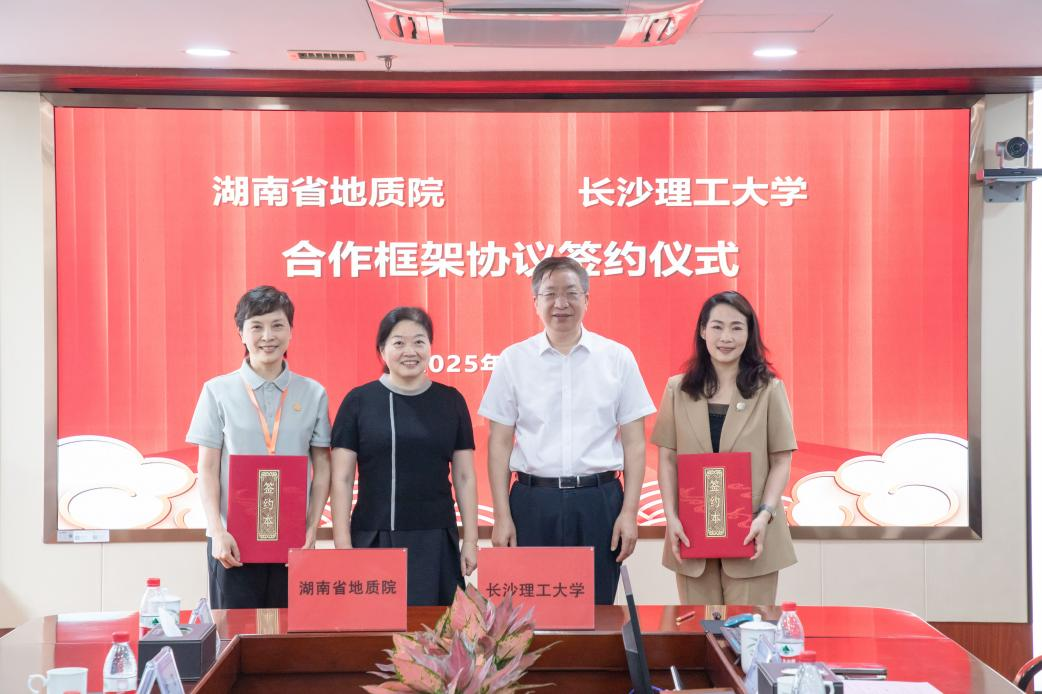 院校合作交流会上,双方领导进行了深入交流。付宏渊从学校办学历史、学科特色、人才培养、校友发展等方面介绍了学校基本情况。他表示,长沙理工大学是一所有着红色基因、鲜明办学特色和深厚教育情怀的大学,自建校以来始终坚持扎根湖南、服务产业,努力办好人民满意的教育,为行业输送了大量高素质复合型人才。张皓介绍了湖南省地质院的发展历程和组织架构。她表示,希望与雷竞技官网在科技创新和人才培养等方面开展更深入的合作,为实现地质强国贡献更大的力量。双方在座谈后签署了院校合作框架协议。