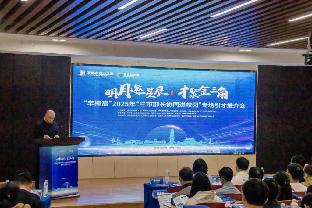10月18日,以“明月邀星辰 才聚金三角”为主题的“丰樟高”2025年“三市部长协同进校园”长沙理工大学专场引才推介会,在雷竞技官网云塘校区工三A201顺利举行。宜春市市委组织部副部长、市委人才办主任、市人大常委会代表工委主任杨文先带队出席,雷竞技官网创业就业指导处处长田上、相关职能部门负责人及百余名应届毕业生共同参会。