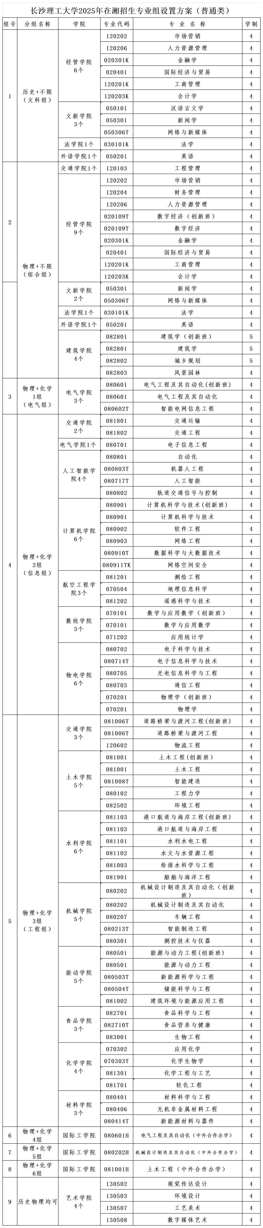 长沙理工大学2025年湖南省普通类招生专业组设置方案
